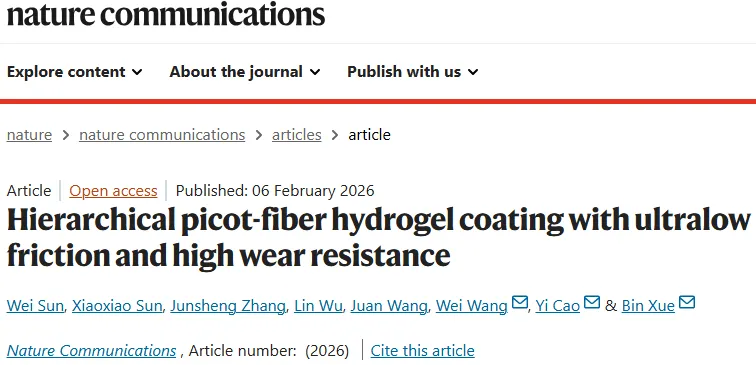 南京大学薛斌/曹毅/王炜等人Nat. Commun.:具有超低摩擦和高耐磨性的分层picot纤维水凝胶涂层