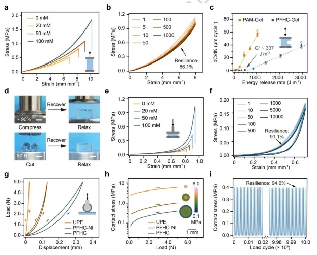 picot纤维能量耗散机制:利用自组装肽GY₆形成的picot纤维(含隐藏长度的折叠β-折叠结构),通过可逆解组装-重组过程同步耗散能量并释放隐藏长度,赋予水凝胶高韧性、抗疲劳和快速机械恢复特性。