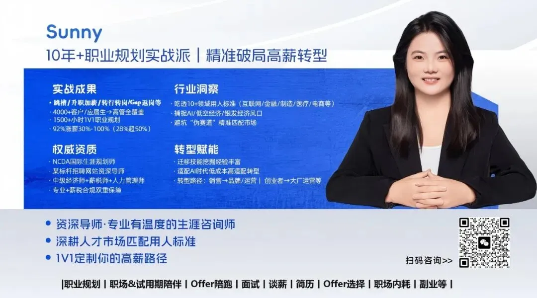 Sunny 职场1V1定制:10年实战,“求职→晋升”全周期护航!