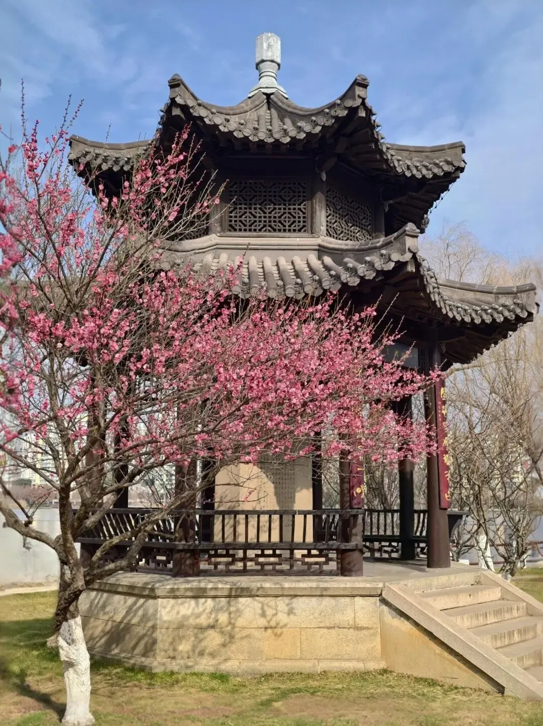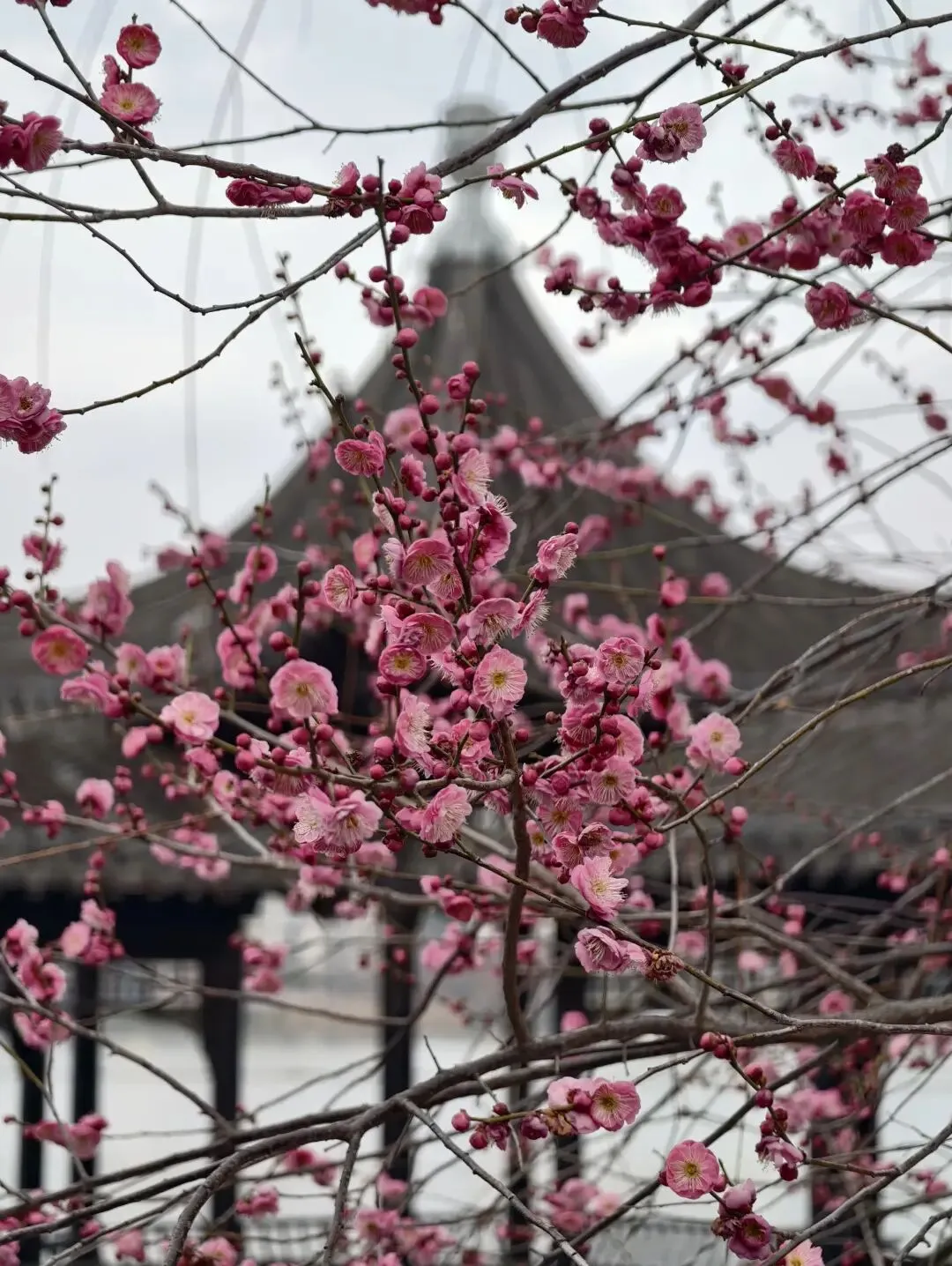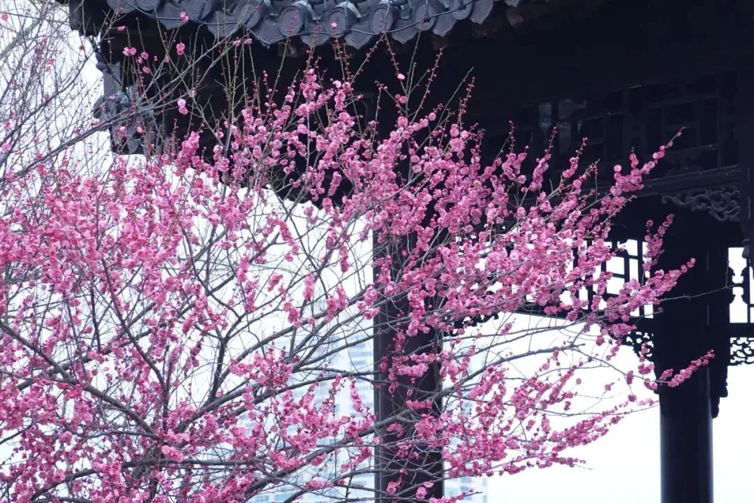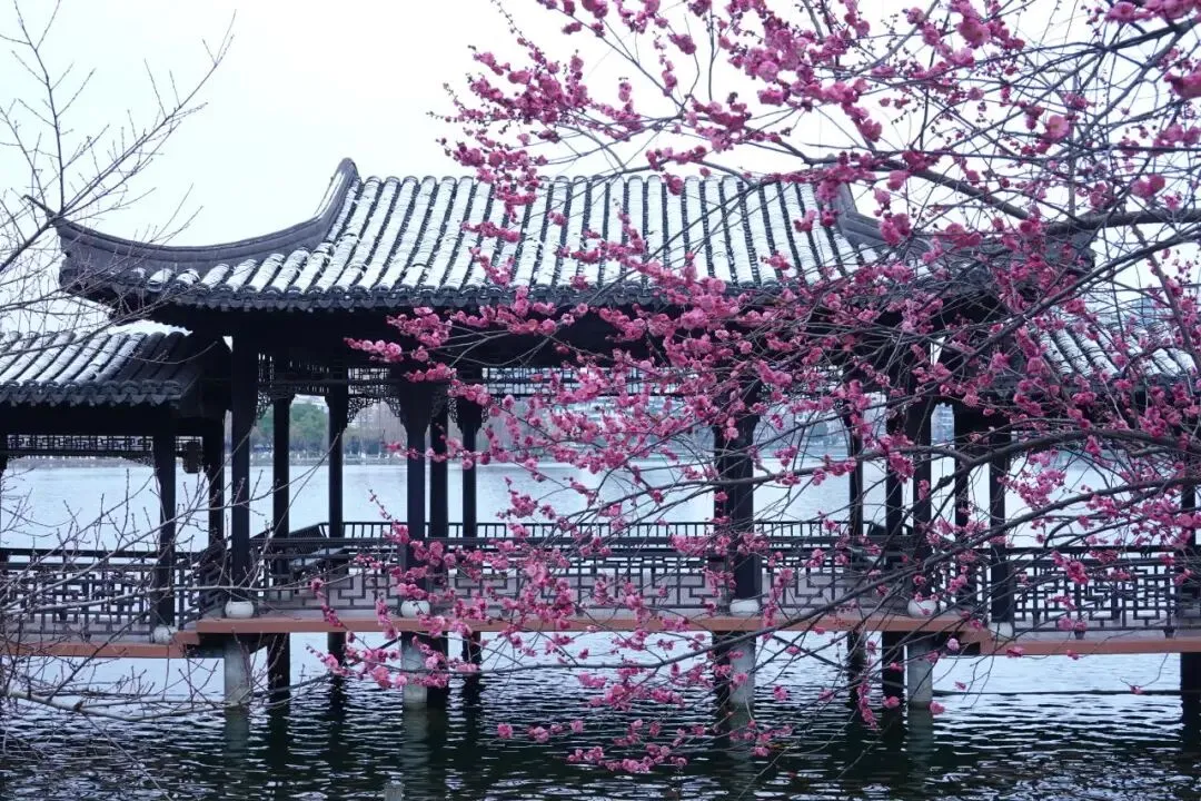 南京地铁2号线直达的湖景梅花!!不用去梅花山人挤人了,这里的暗香红梅也很出片!!宝藏中式亭台古建和梅花太搭了,被忽略的好去处!!