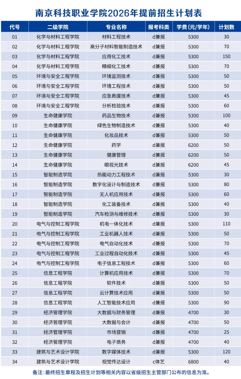 具体信息请查看招生信息网发布的《南京科技职业学院2026年提前招生简章》。