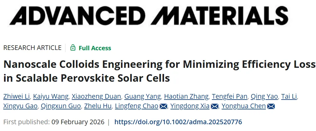 Z. Li et al, Nanoscale Colloids Engineering for Minimizing Efficiency Loss in Scalable Perovskite Solar Cells, Advanced Materials,