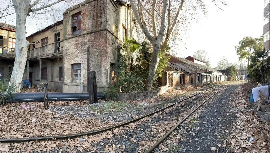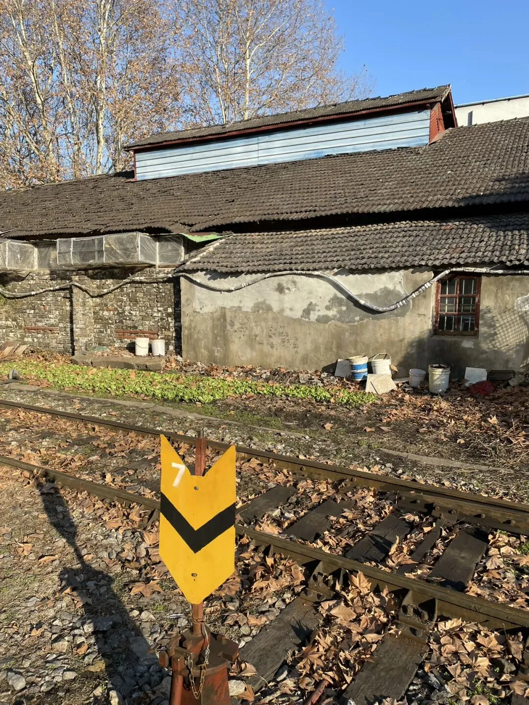 从工厂里延伸出的铁轨,就这样理所当然地躺在巷子里,从居民楼脚下穿过,铺满落叶。