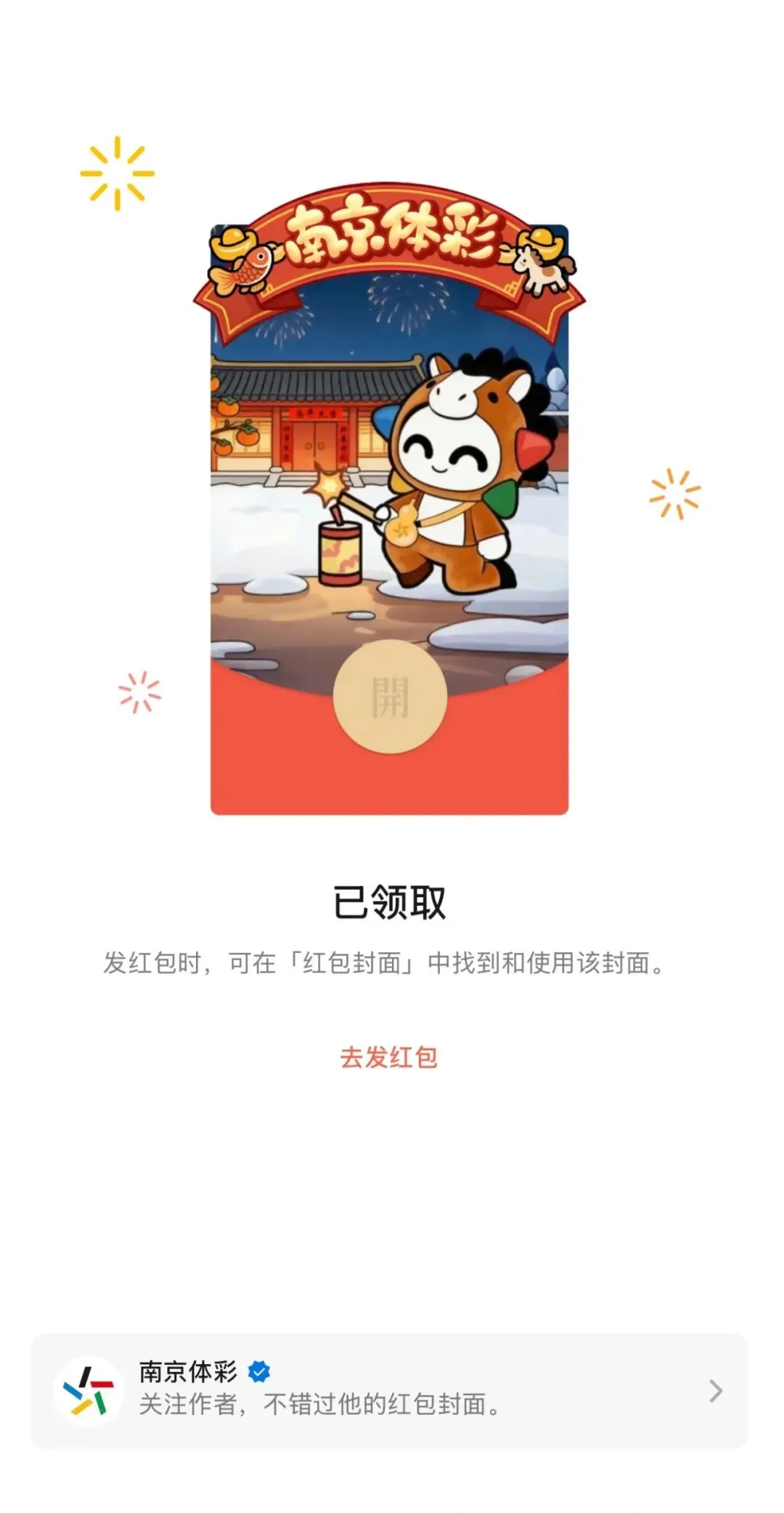 南京体彩专属马年微信红包封面