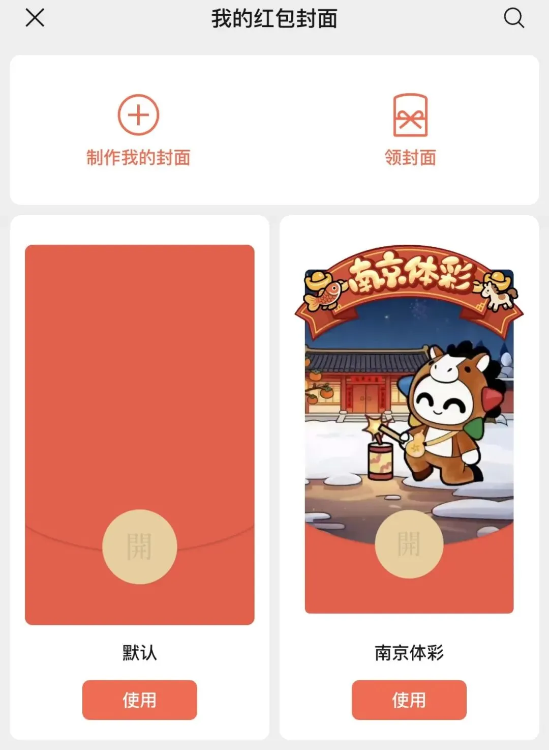 3、进入封面选择界面后,点击“南京体彩红包封面”。