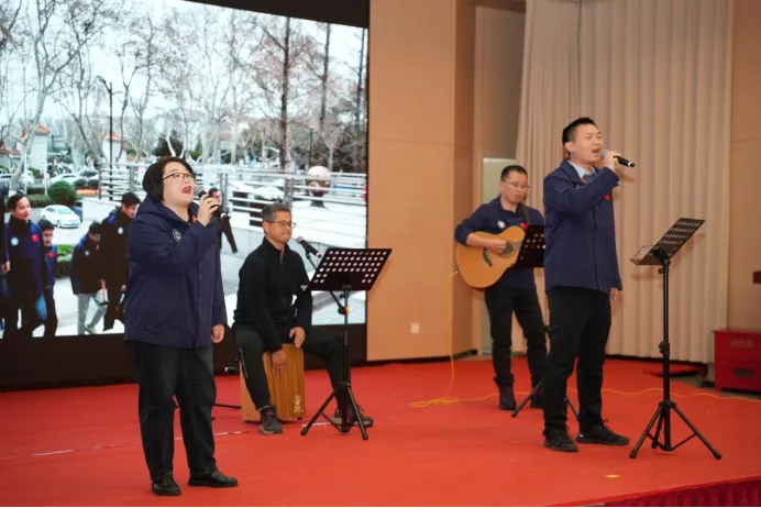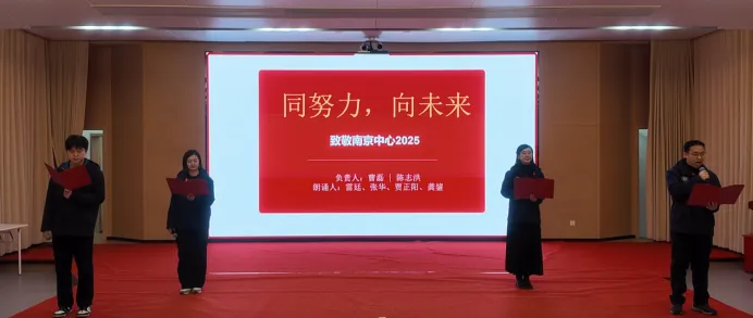 历史长河奔涌向前,地质人的足迹始终坚定。情景诗朗诵《同努力向未来》紧随其后,表演者们以铿锵有力的语调、饱含深情的演绎,回顾了南京地调中心2025年在攻坚克难中创新突破、在团结协作中奋勇前行的动人篇章,诉说着地质人扎根大地、服务国家的赤诚担当,字字句句皆凝聚着对事业的热爱、对未来的期盼。