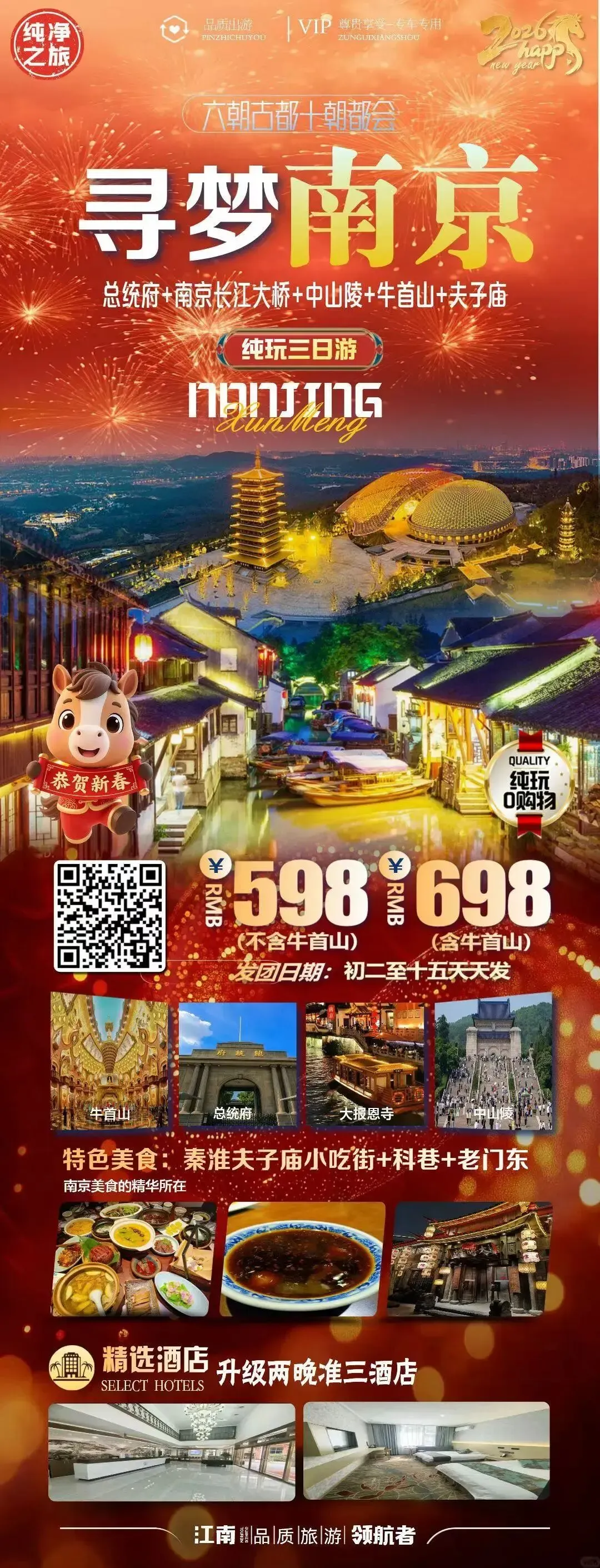 【春节 | 年味南京】廿八至正月十三 天天发班 总统府,牛首山,中山陵,阅江楼,大报恩寺古都深度纯玩3日游~