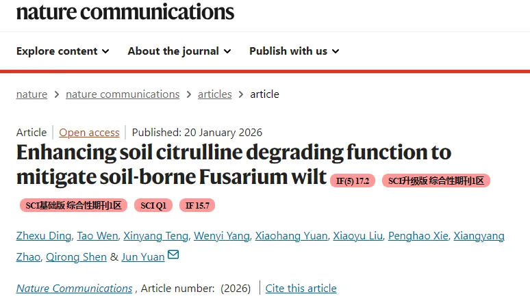 南京农业大学博士生丁哲旭、博士后文涛论文共同第一作者;袁军教授为通讯作者。该研究得到了国家自然科学基金(42322708、42090060、42277297、42307394)、中央高校基本科研业务费专项资金(KJJQ2025017、YDZX2025045)、国家现代农业产业技术体系(CARS-23)和中国博士后科学基金(BX20230160)的联合资助。