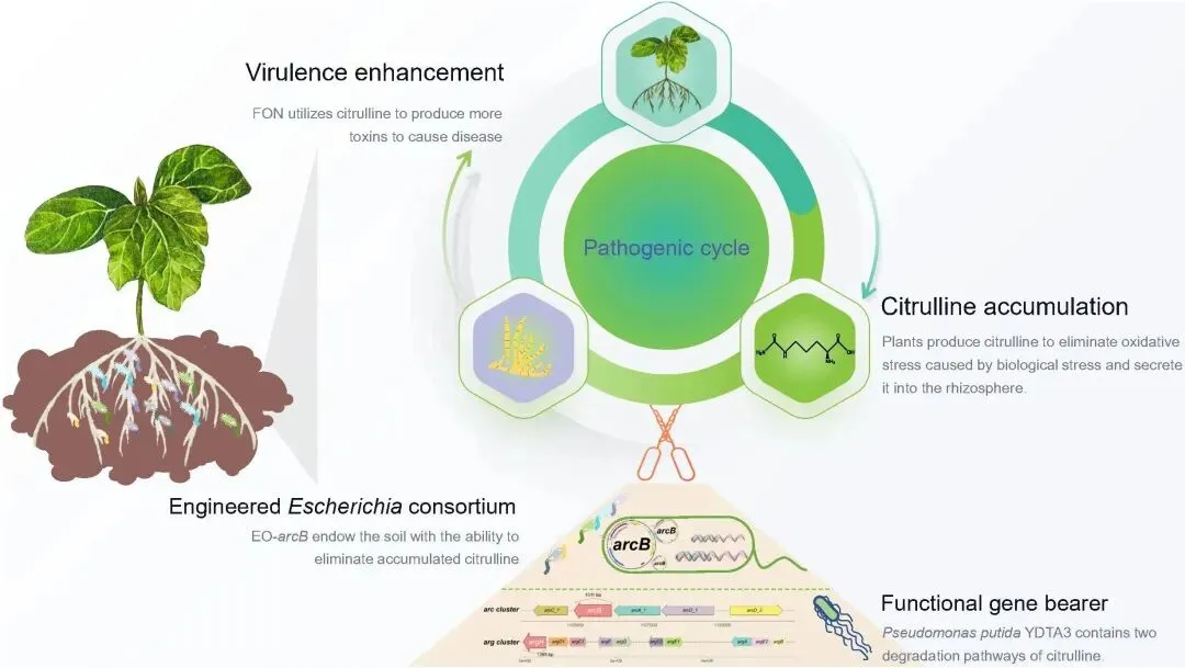 ①解析连作系统的致病机制,增强土壤瓜氨酸降解功能缓解土传镰刀菌枯萎病