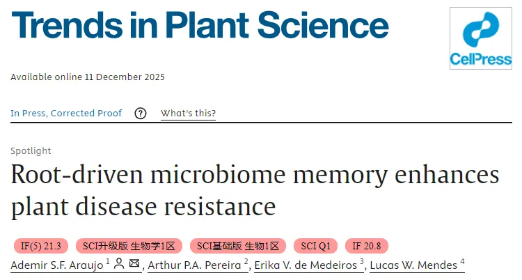 值得一提的是,植物科学领域国际顶级综述期刊 Trends in Plant Science 在12月11日就这项研究进展发表了题为 “Root-driven microbiome memory enhances plant disease resistance” 的 Spotlight(焦点评述)文章 。文章将这一发现定义为一种“拉马克式”的代际适应性免疫策略,认为植物将与微生物互作的经验通过化学和表观遗传的方式编码,并传递给后代。