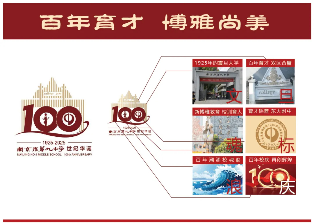 2025年,九中建校百年,为此,学校组织了一系列活动,让在校师生和校友们充分表达他们对九中的浓郁情感。年初,学校向在校师生和校友征集学校百年校庆的标识,并在开学典礼上发布励志徒步活动。