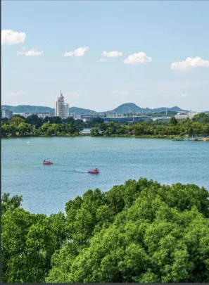 湖面开阔,五洲星罗棋布,四季景致分明:春日樱洲绯云漫天,夏有荷花映日,秋闻丹桂飘香,冬可观雪覆城墙。千年以来,它从帝王练水师的后湖,演变为市民闲步、泛舟的城市乐园。