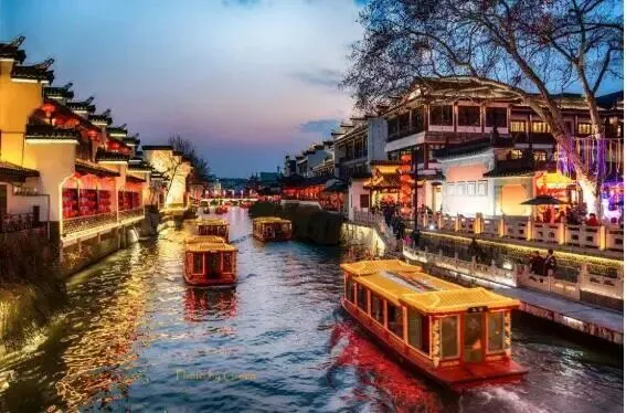 秦淮河畔流光溢彩、桨声灯影璀璨夺目,霓虹闪烁,灯带灿烂,悠闲的踱步在秦淮河畔,体味千年古都的繁华。