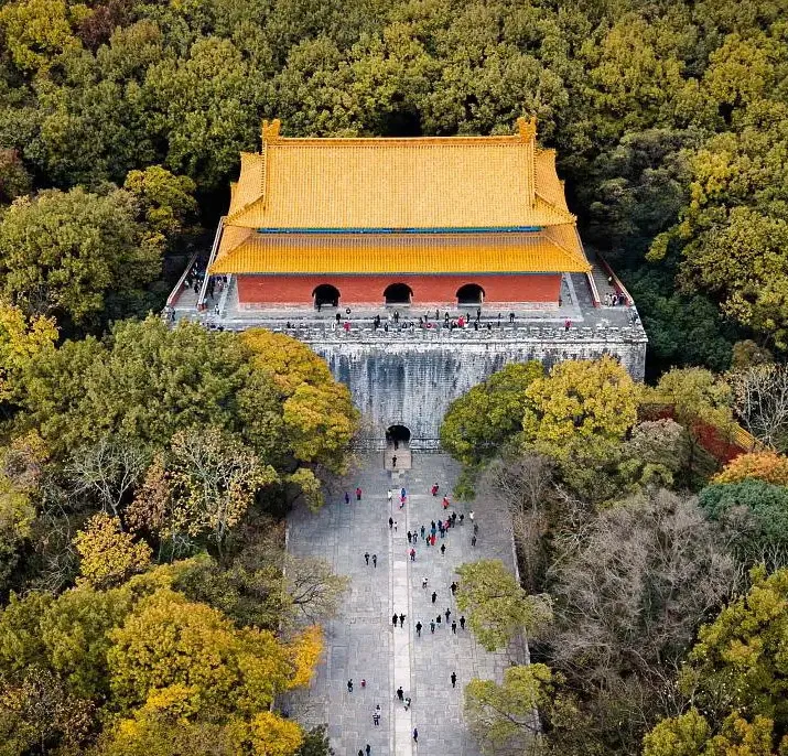 沿梧桐大道前行,抵达中山陵。攀上392级台阶,不仅是一次身体的登高,更是对“天下为公”精神的仰望。与之辉映的,是朱元璋的明孝陵,秋日石象路上金黄遍染,六百年守护不改庄严。
