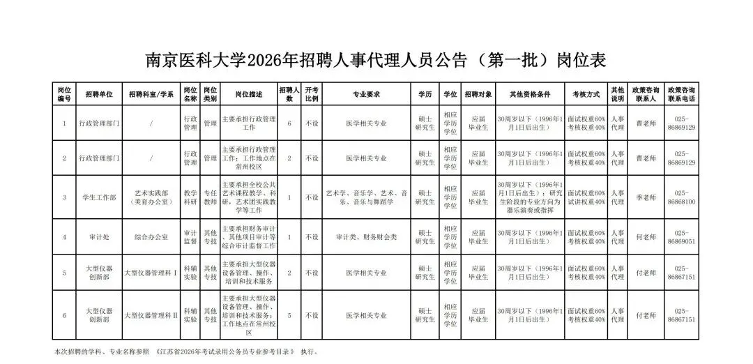 附件1.南京医科大学2026年招聘人事代理工作人员公告(第一批)-岗位表.xlsx