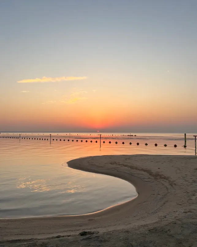 再往南,是洪泽湖的辽阔,垂暮时光线铺满湖面,远处的鸟巢被照出金色的影。