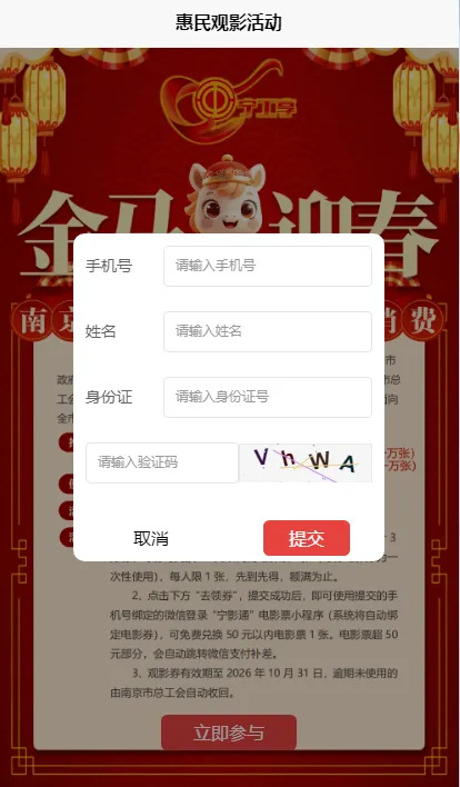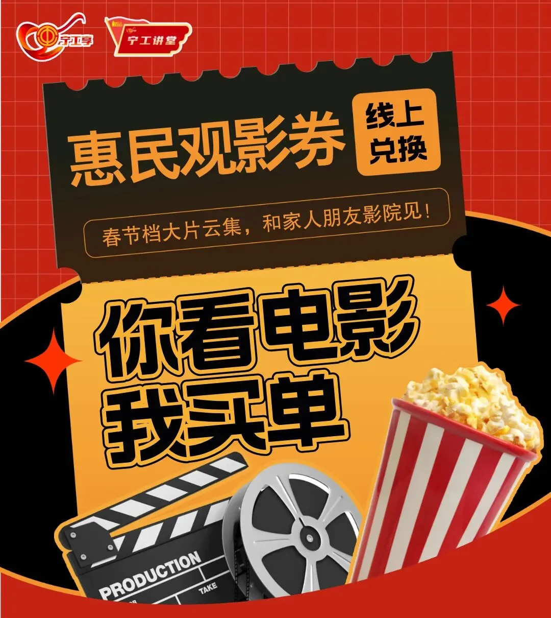 为落实市政府2026年春节暖心惠民稳岗留工十条举措要求,南京工会联合南京电影协会宁影通电影票务平台,重磅推出“宁工友礼 文化润心——暖心惠民促消费”惠民电影券发放活动。