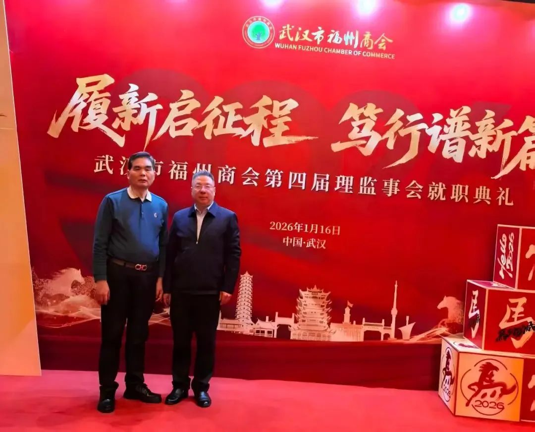 武汉市福州商会举行第四届理(监)事会就职典礼,我会监事长陈祥、秘书长叶光明应邀出席会议。