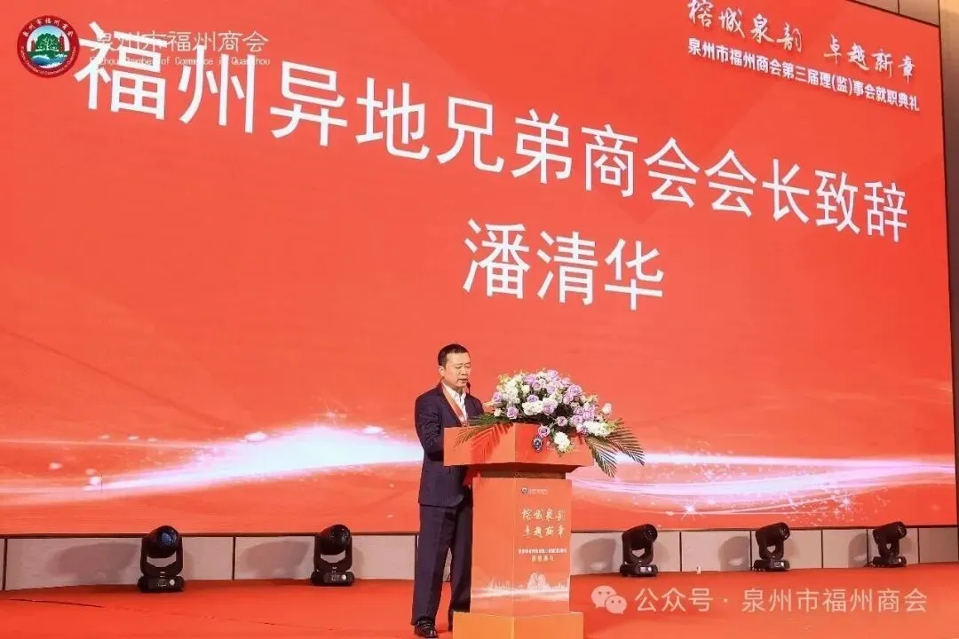 泉州市福州商会举行第三届理(监)事会就职典礼,我会会长潘清华、常务副会长郑玉成应邀出席会议。潘清华会长代表福州异地兄弟商会会长致辞祝贺。