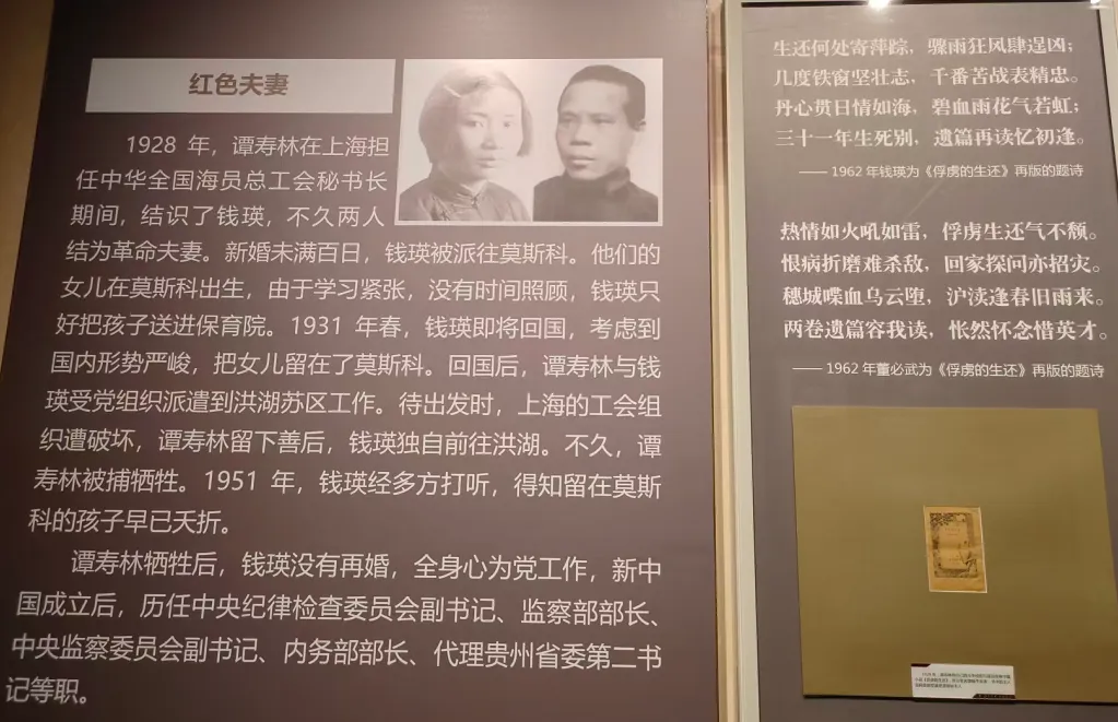 革命夫妇谭寿林与钱瑛,是一对并肩战斗直至最后的典范。他们同为早期革命者,在白色恐怖中相互扶持,共同从事地下工作。1931年,谭寿林被捕,于5月30日在雨花台英勇就义。他的妻子钱瑛,这位后来成为新中国监察事业奠基人的杰出女性,将巨大的悲痛化为继续战斗的力量。这份“既许国,再难许卿”的深情中饱含的是将未尽理想托付给爱人的坚定信任。三十年后,她写下深情的追思诗句:“丹心贯日情如海,碧血雨花气若虹。”