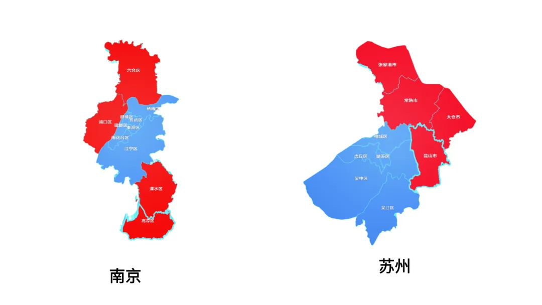 南京、苏州这两座城市,说实在的,一直处于同一个“咖位”,都知道苏州的制造经济强,南京的综合实力强;苏州总量大、南京消费强。