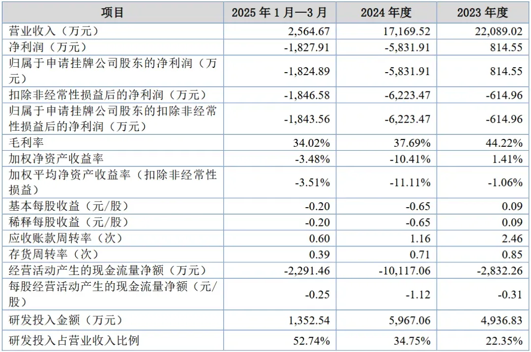财务数据上,2023年和2024年,公司分别实现营业收入2.21亿和1.72亿元,扣非后归母净利润分别为-615万元和-6,223万元,公司尚未实现盈利。股转公司在审核问询中要求公司说明收入下降的主要原因、公司业务是否存在持续下滑风险,并要求公司测算实现盈亏平衡的时间。