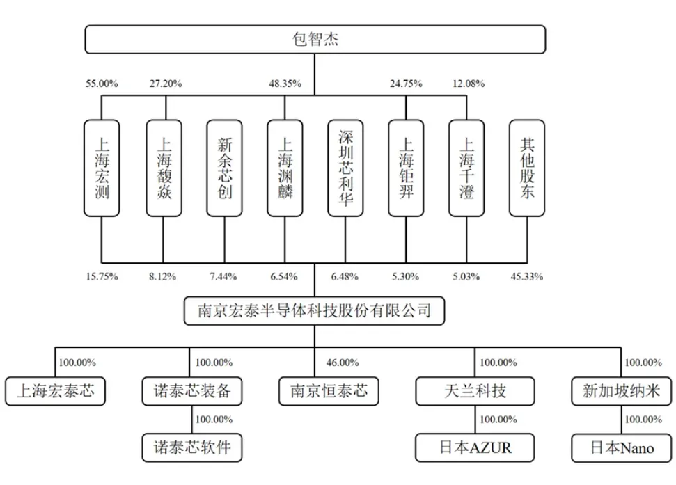 截至本报告出具之日,宏泰半导体共计38名股东,不存在持有的股份占公司股本总额百分之五十以上的股东;且公司股权结构较为分散,亦不存在持有的股份所享有的表决权足以对公司股东会决议产生重大影响的单一股东。宏泰半导体无控股股东。