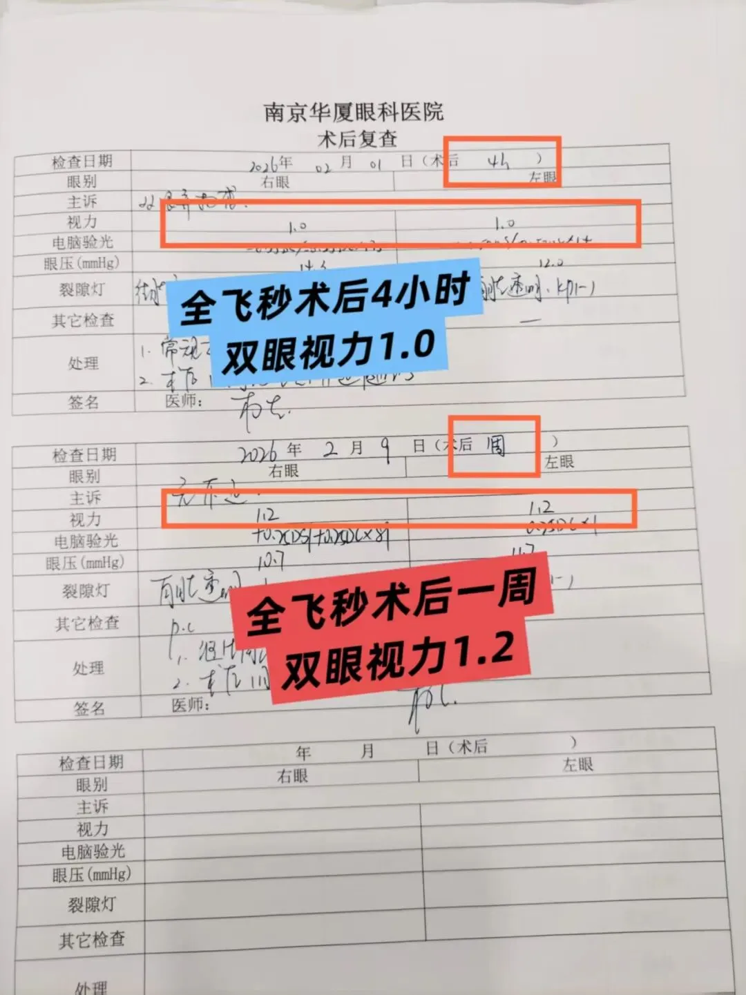 500+度近视术后1周双眼1.2!