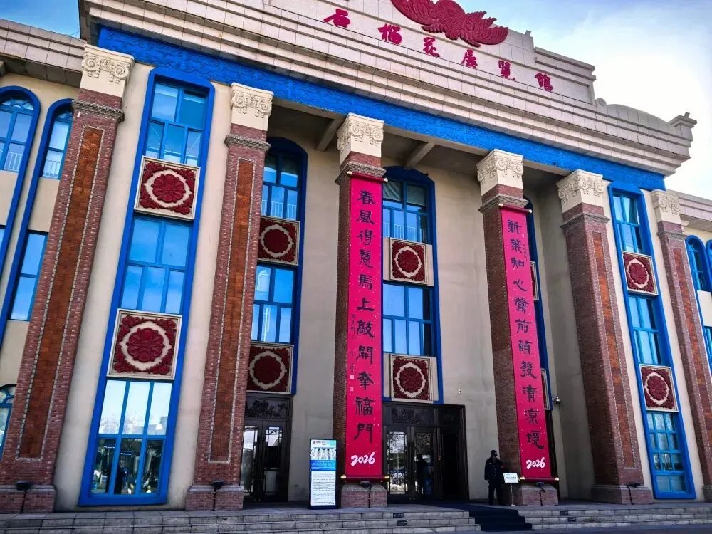 石榴花展览馆前,由眭珊创作的“新叶知心,莺前萌发清凉境;春风得意,马上敲开幸福门”,以新叶春风、策马迎福的意象,传递出幸福美满的新春祝福,与展览馆的文化内涵相融,成为春节里一道温润的文化风景。由中国书法家协会理事、江苏省书法家协会副主席、南京师范大学教授常汉平书写的这副春联同时悬挂于南京清凉门。古墙新叶与簇簇红榴,是新春的生机、团团的暖意。这抹跨越千里的红,让江南的清幽与塞外的炽热在墨香中交织。