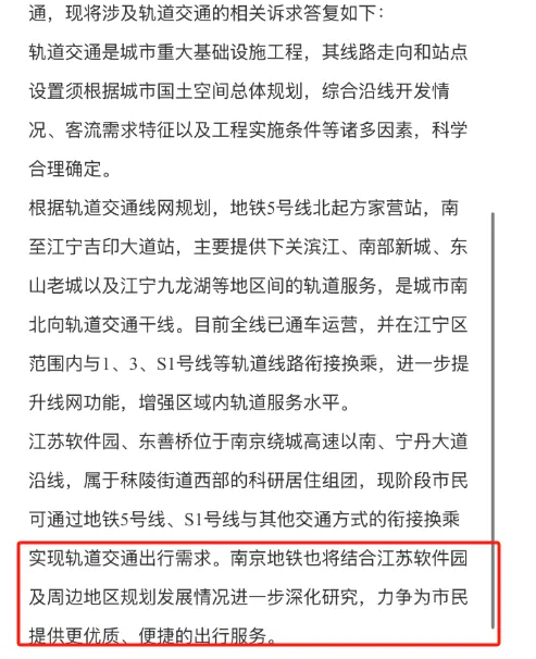 答复还提到,目前以南京市城市总体规划和综合交通规划修编为契机,南京市规划和自然资源局及南京地铁集团正在共同牵头开展新一轮《南京市轨道交通线网修编》工作,江宁区规划部门将会同有关部门: