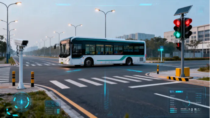 智能网联公交车在公交运营中具有多元化应用。通行方面,可与红绿灯联动,驾驶员提前获知信号状态以调整车速,提升通行效率。安全方面,通过主动预警系统实时监测路况、驾驶员行为及车辆状态,实现超视距与前向碰撞预警。车辆还可采集道路设施信息,辅助优化公交调度策略。