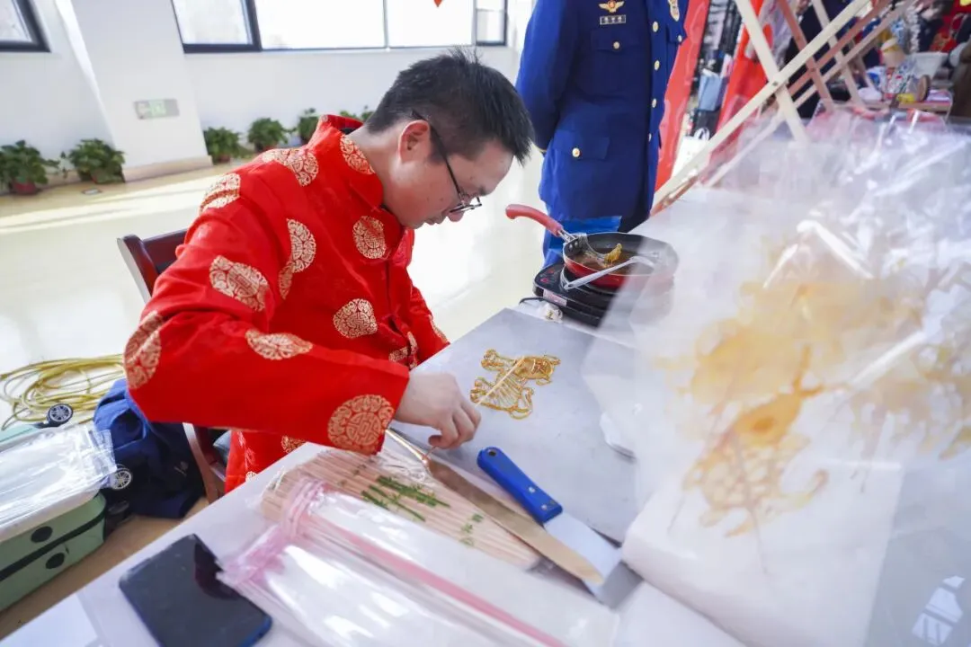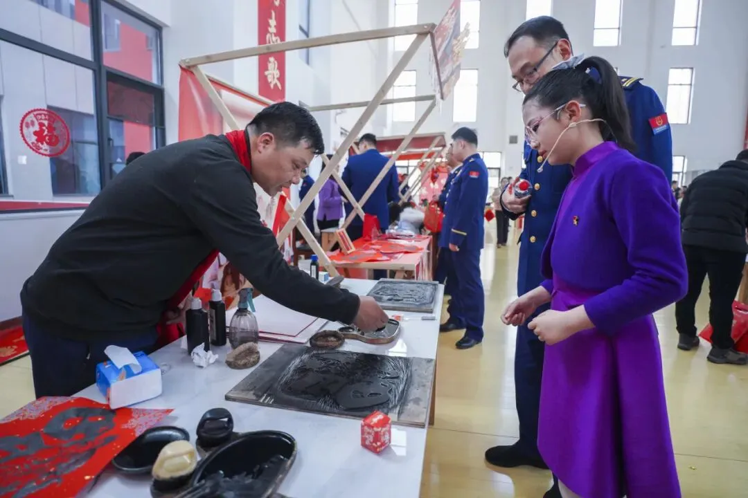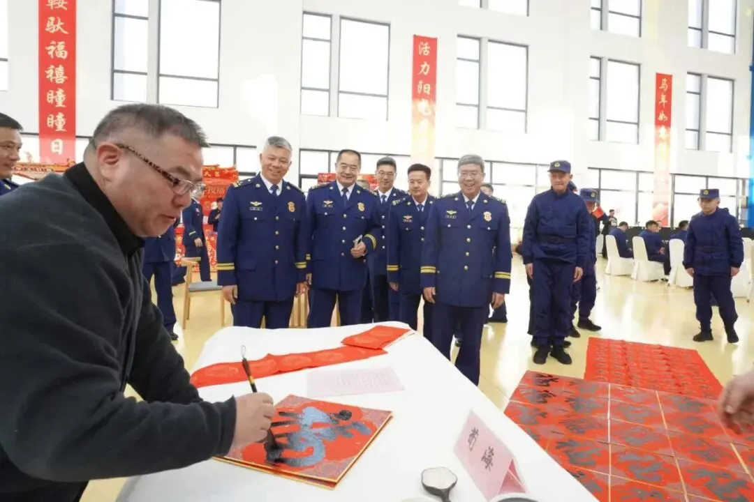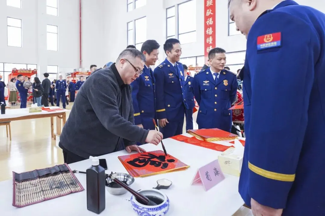 南京艺术学院书法系副教授荀海应邀前来,现场挥毫泼墨书写春联福字,指战员和家属们纷纷驻足求“福”,翰墨飘香中更添年节雅韵。
