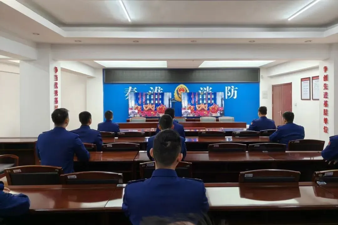 总队政治委员刘锡鑫、政治部主任张成、一级专员顾东明、季智洲,离退休老干部代表,支队在家党委成员,先进集体和个人代表,机关各处室、基层各大队指战员及家属代表在主会场参加,基层各大队、消防站除执勤值班外全体人员通过网络直播同步收听收看,共贺新春。