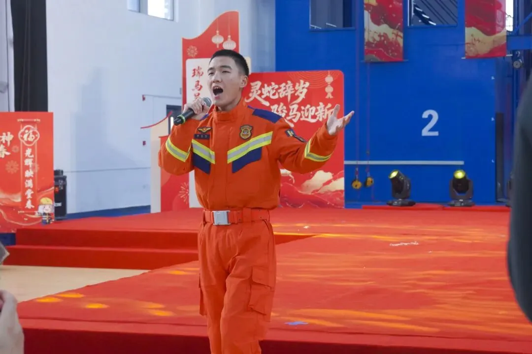 《祖国有我》唱响使命担当,《当青春遇见火焰蓝》诉说青春无悔,《小美满》传递家庭温情,《火焰蓝》彰显蓝焰风采,《我会一直顺》承载新年祝福,最后在《欢乐中国年》的欢快合唱中,指战员与家属用歌声共绘家队同心、共庆新春的温暖画卷。