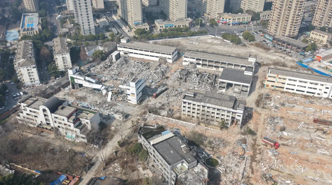那么,时隔一年后,该地块现状如何?2月11日,西祠房产进行了现场实探。西祠房产在现场看到,该地块被围挡,围挡上张贴了“正在拆除 请勿靠近”的通知。从高空俯瞰,地块内部正在进行拆除工作,部分厂房已变成废墟。后续,随着该地块的拆除工作及相关规划调整公示的完成,将有望很快出让。