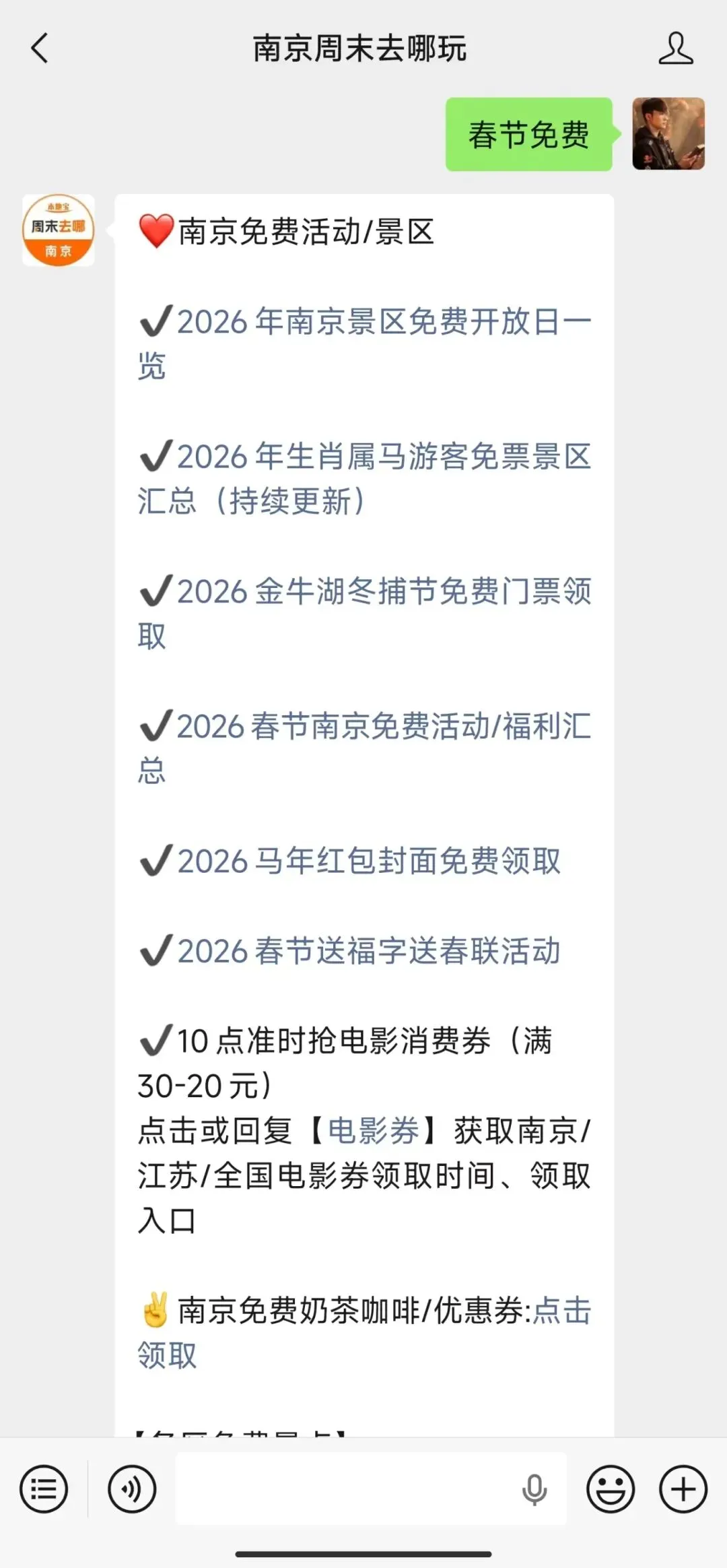 回复【免费】获取南京免费信息汇总