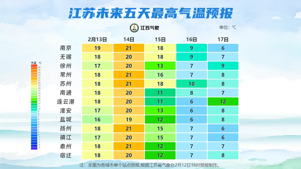 预计当前至春节假期(2月12日至23日),江苏省以晴好天气为主。