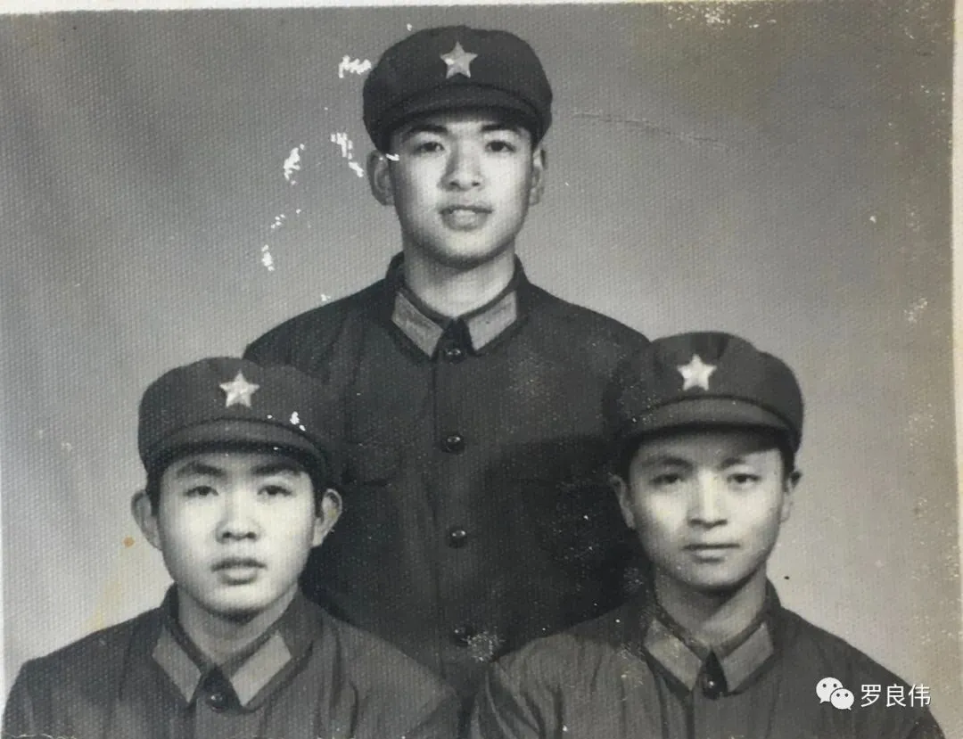 (与在军校一同读书的两位家乡战友的合影。中间为笔者。当年我在军校给在南京读书的家乡同学写的第一封信,就是这两位战友帮我主意、帮我抄的)