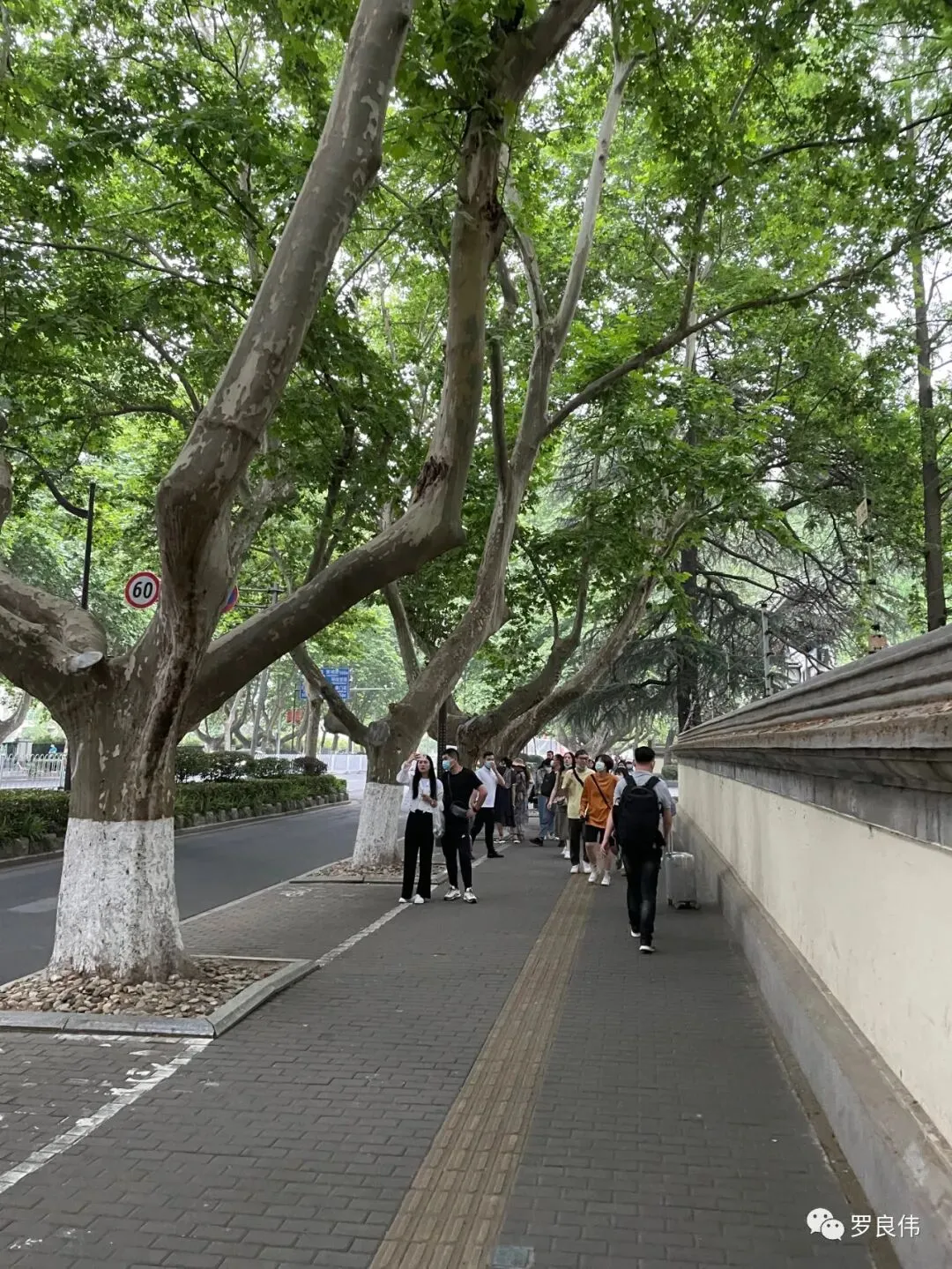 (校园内。校园人行道上有许多高大的梧桐树。补拍于2021年6月,我重返南京)