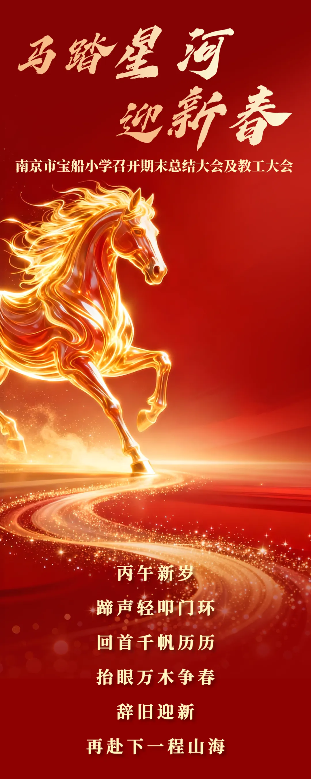 第十届“扬帆好教师”颁奖典礼暨期末总结大会圆满落幕。这一幕,是全体宝船人坚守与担当、温情与奋进的生动缩影。2026年,我们将携手迈入“十五五”发展的全新赛道。宝船小学将带着荣誉积淀的底气、团结凝聚的热力,在鼓楼教育高质量发展的征途上阔步启程,以匠心守望初心,用奋斗续写华章!