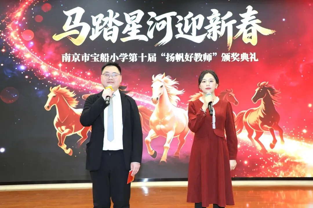 作为期末总结工作的重要环节,为进一步激励全体教职工在新一年里接续奋斗,宝船小学第十届“扬帆好教师”颁奖典礼正式拉开帷幕。本次活动由蒋宇科、吴佳欣两位老师主持。