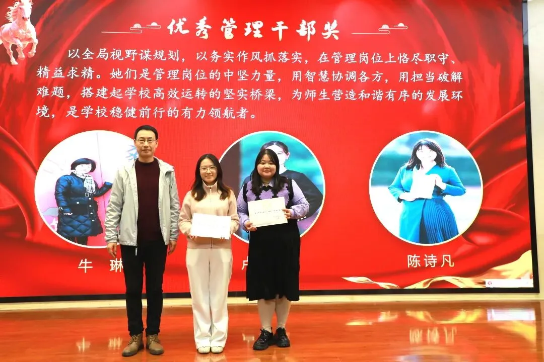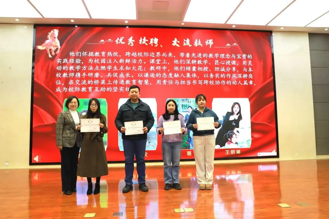 王妍琳、王琼颖、耿崧汶、刘璐老师荣获“优秀交流、校聘教师奖”。她们将在交流轮岗中积淀的教育教学智慧带进新集体,于一线课堂倾力践行、无私分享,为学校育人实践注入鲜活思路与专业力量。