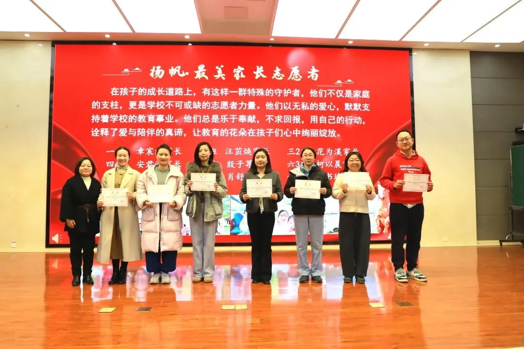 家校同心,共育花开。“最美家长志愿者”们以热忱投身校园活动,用真诚架起家校沟通的桥梁。侯静副书记为获奖家长颁发荣誉,致敬这份无私支持。以一6班章宸沁家长、二1班汪茁焕家长、三2班花为溪家长、四4班安君浩家长、五7班殷子荨家长、六3班柯以晨家长、六4班李谨希家长、六5班肖舒窈家长、六5班刘书瑜家长为代表的最美家长志愿者们,如春风化雨,为学生成长注入温暖而多元的力量。