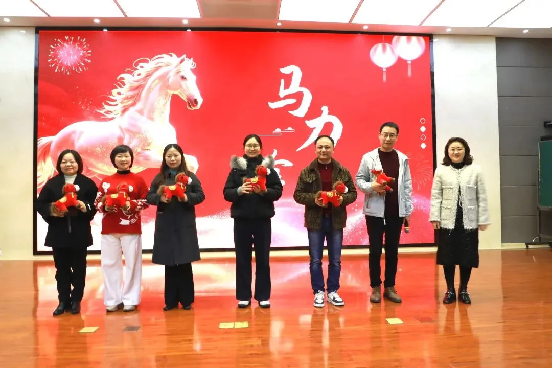 活动渐近尾声,属马老师们携手登台,在侯静副书记的带领下,以真挚热烈的新春祝福将马年喜气推向高潮。现场还为9位即将迎来“小马驹”的准妈妈教师送上全校师生的暖心祝愿,温情涌动,暖意盈怀。