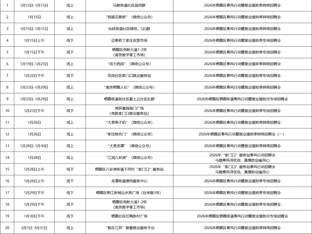 1-3月414场!南京市2026年春风行动等系列活动安排提前知