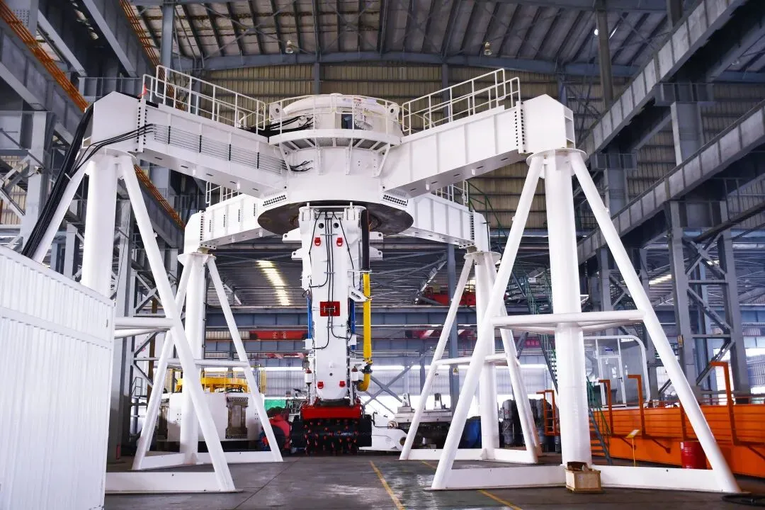 徐工集团凯宫重工南京股份有限公司成立于 2011年,坐落于南京江宁滨江经济开发区,占地120 亩,是徐工集团旗下专业从事盾构机和竖井嵌岩钻机研发、制造、维修再制造和租赁服务业务的企业。公司拥有有效国际发明专利1件、国内发明专利29件、实用新型专利53件;荣获专精特新小巨人”企业、高新技术企业、江苏省绿色工厂、江苏省企业信用管理贯标企业、江苏省信息化与工业化融合试点企业、江苏省重点推广应用新技术新产品等荣誉称号。产品名称:KSJ-18000开挖直径10m以上深大竖井嵌岩钻机成套设备