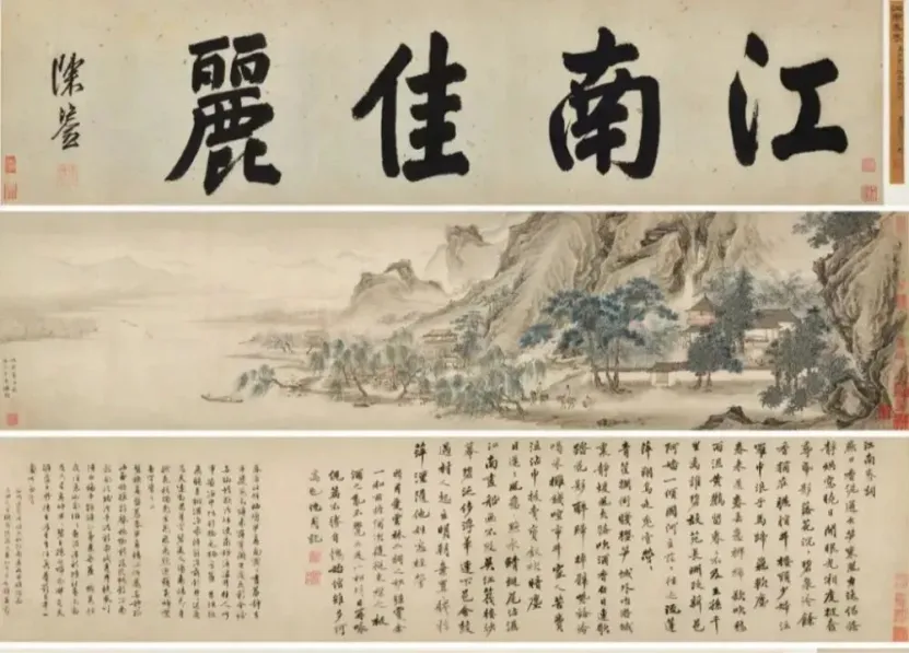 1949年庞莱臣离世后,其孙庞增和继承了数百件珍品,其中最耀眼的便是明代仇英的《江南春》——全画长达7米,集画作、名家和词、60多方印鉴于一体,堪称国宝。