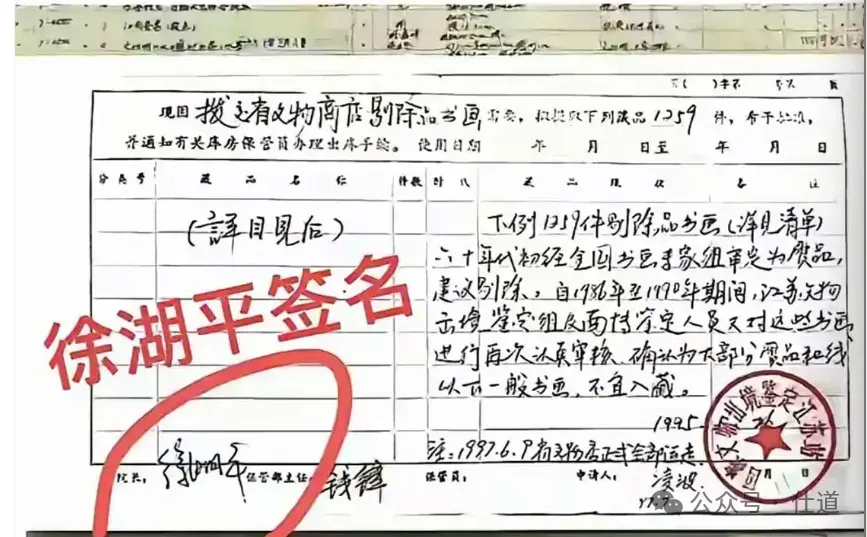 而“胆子非常大”的徐湖平,在执掌南博期间,则干出了一件震惊全国文博界的事:1997年,南博一次性将1259件藏品从馆藏目录中剔除,直接划拨给文物商店出售。如此操作在中国博物馆历史上是极为罕见的,堪称文博界的“奇迹”。