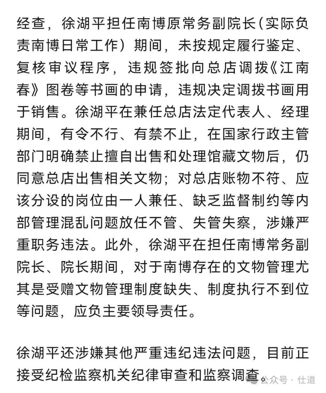 实际上,徐湖平在落马之前,因为南博古画《江南春》失踪事件,几乎所有的舆论矛头都指向了他。