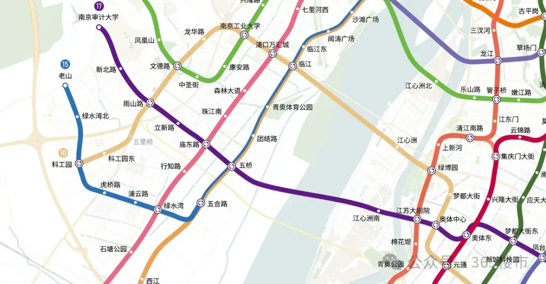 放到全市视角来看,17号线一条东西走向的过江通道,其将进一步拉近江北江南的空间距离,尤其是五桥沿线与河西区域,这两个区域将能够通过轨道交通直接相连接。